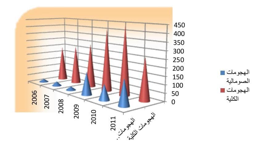شكل(1): نسبة هجومات القرصنة الصومالية مقارنة بالهجومات الكلية